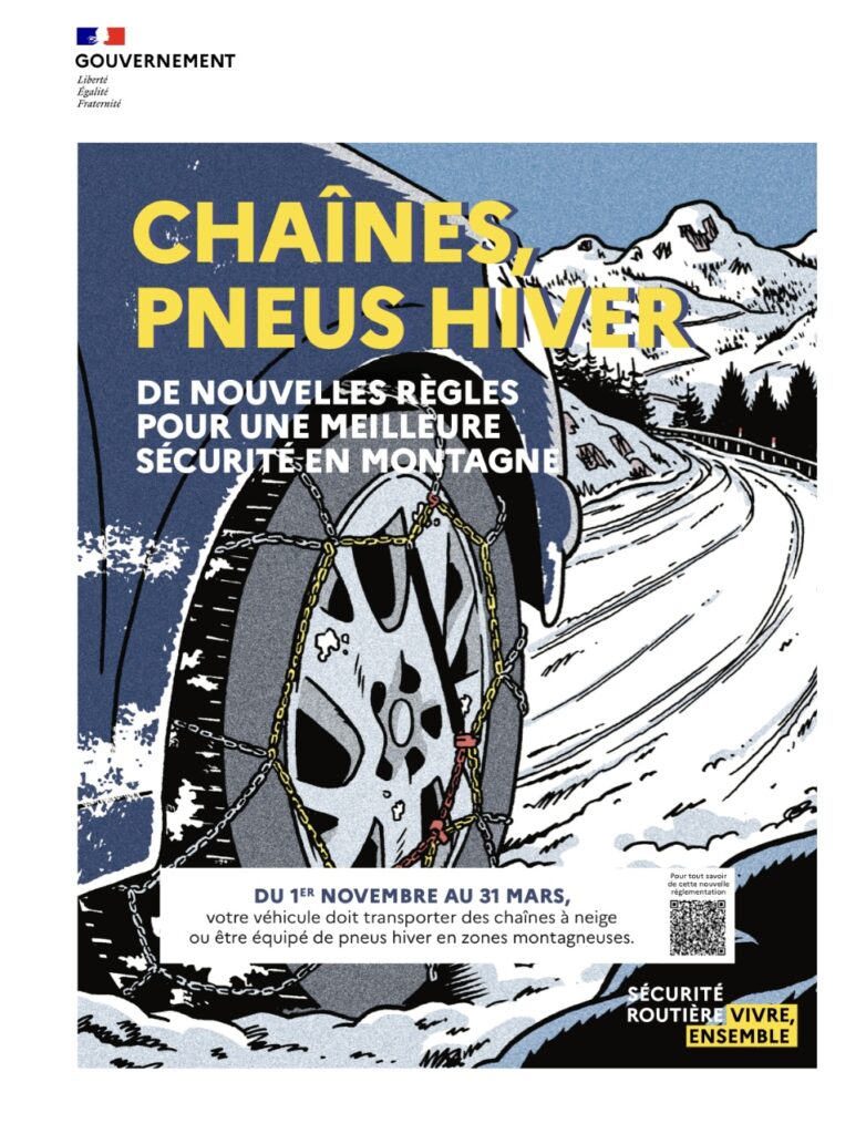 Du 1er novembre au 31 mars, l’équipement hivernal est obligatoire dans 34 départements situés dans les massifs montagneux. Cette mesure, mise en place par le gouvernement français, vise à renforcer la sécurité routière et à éviter les blocages en montagne en cas de neige ou de verglas.